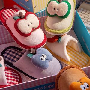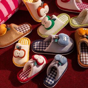 小众卡通苹果包头棉拖女2025秋冬新款可爱外穿保暖防滑毛毛拖鞋软