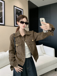 实拍 2025秋季韩版复古休闲高级感翻领皮衣外套女机车夹克衫上衣
