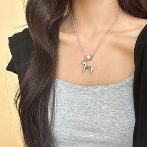 甜美气质可爱花朵拉丝小狗吊坠项链女高级感辣妹个性设计感锁骨链