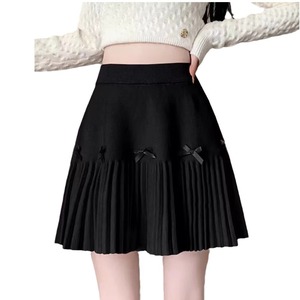 甜美减龄蝴蝶结针织百褶裙女高腰遮胯显瘦大摆a字伞裙半身裙短裙