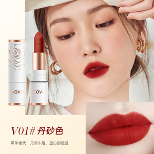GOVO绢感柔雾不沾杯口红 奶茶豆沙色雾面防水丝绒哑光不掉色唇膏
