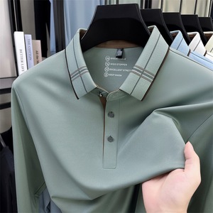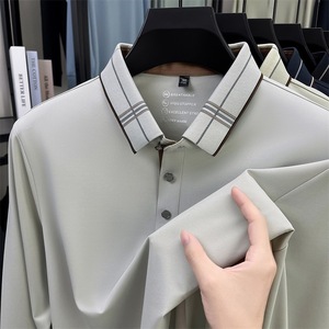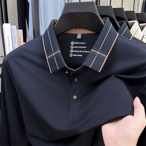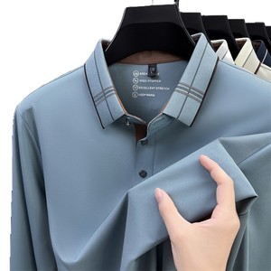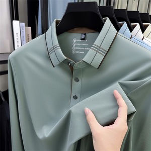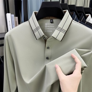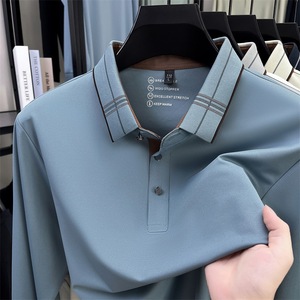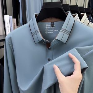 男式长袖Polo衫秋季新款毛纱领商务休闲无痕冰丝翻领打底T恤衫男