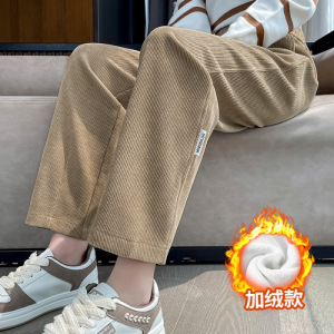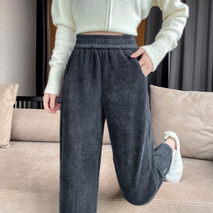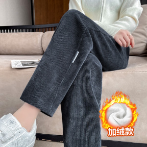 高腰运动哈伦裤女秋冬宽松大码窄版直筒裤加绒保暖外穿阔腿休闲裤