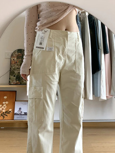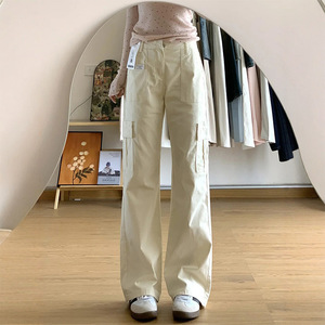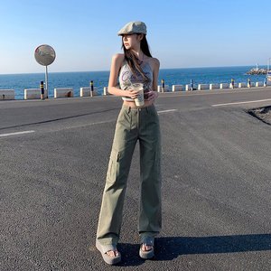米杏色工装裤女夏季2025年新款小个子宽松显瘦窄版直筒垂感休闲裤