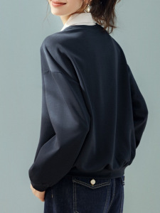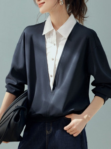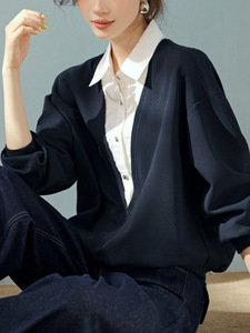 都市启示录2025秋款时尚简约休闲撞色拼接假两件长袖衬衫领卫衣潮