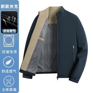 皮尔卡丹新款立领夹克衫男士中老年男士休闲行政外套春秋款爸梦伟