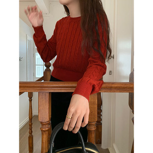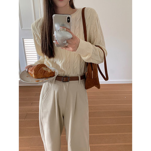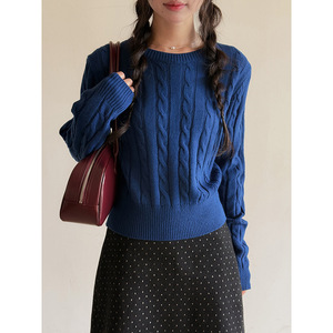 【暖阳情诗】歌铭学院风麻花毛针织衫女装秋季新款宽松上衣Y8823