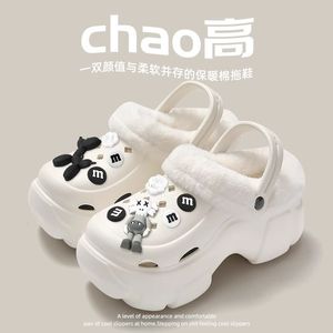 3.5cm棉拖鞋女款秋冬季洞洞鞋加绒新款厚底防滑保暖可拆卸棉拖外