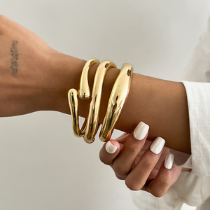 欧美跨境设计感大光圈宽版手镯个性光面金属时尚手环女夸张手饰品