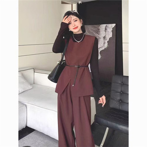 高级感复古小香风马甲套装女2025年秋季法式气质减龄阔腿裤三件套