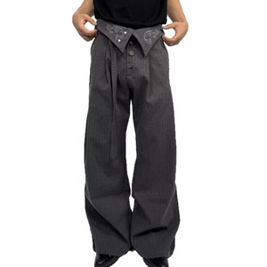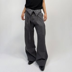 高腰打褶刺绣条纹西裤男士设计感直筒微喇剑道飘带垂坠感休闲长裤