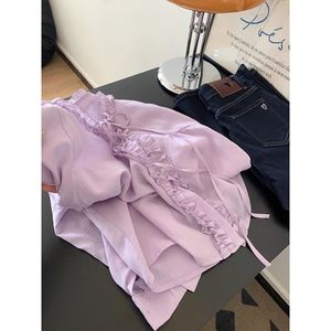 蝴蝶结系带木耳边紫色衬衫气质女士上衣小个子设计感夏季小众穿搭