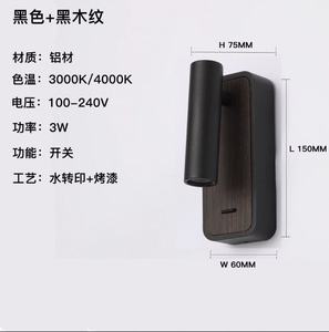 现代简约酒店客房明装床头阅读壁灯可调节角度家用带开关壁挂式