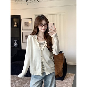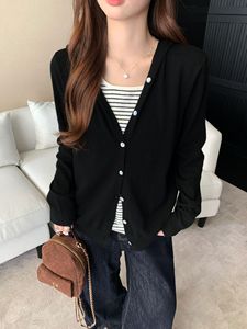 实拍2025秋胖mm大码假两件条纹拼接长袖针织衫韩系叠穿上衣68667