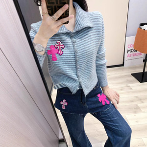 ch25ss秋冬新款重工针织条纹针织毛衣开衫时尚百搭