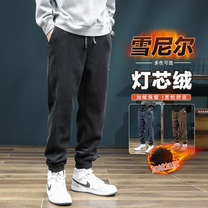 代发灯芯绒休闲裤男士2025秋冬季宽松束脚卫裤加绒保暖运动裤外贸