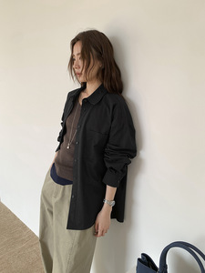 广州十三行2025秋韩风纯棉宽松气质通勤百搭磨毛感廓形衬衫02992