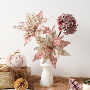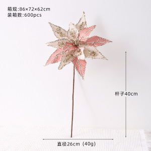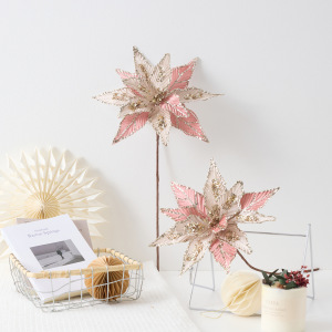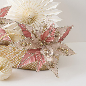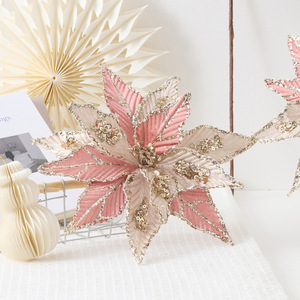 跨境新款圣诞节装饰品粉色韩系圣诞花高档手工布艺仿真花节日装饰