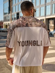 YOUNGLA美式潮牌超大T恤男士运动健身速干透气大网眼双零球衣短袖