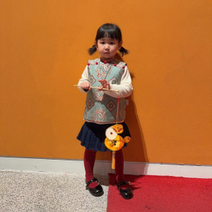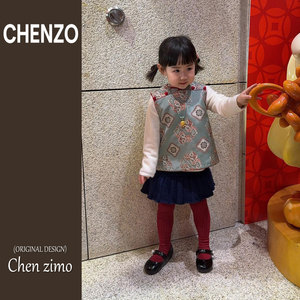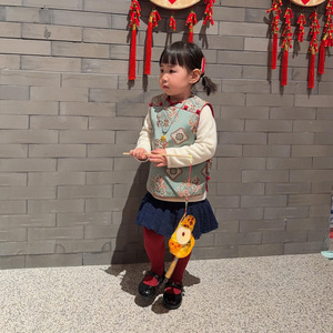 女童套装2025新款秋装洋气儿童中式复古提花圆领马甲宝宝针织短裙