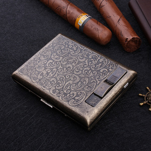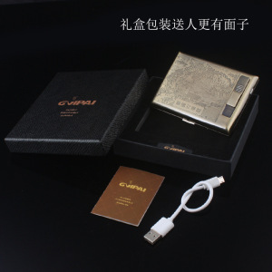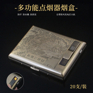 金属点烟器烟盒雕花20支装多功能烟盒点烟器充电打火机烟盒礼盒装