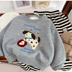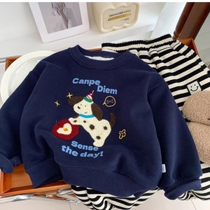 男女童一体绒卫衣秋冬装2025新款儿童圆领套头衫卡通加绒上衣