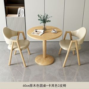 卡其色2皮椅+60原木色圆桌