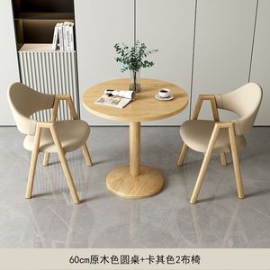 卡其色2布椅+60原木色圆桌