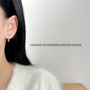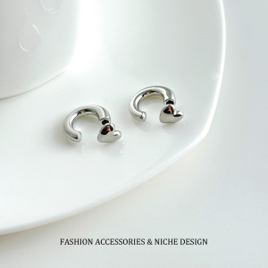精致小巧爱心蝴蝶光面C形金属耳环女小众高级感简约时尚百搭耳钉