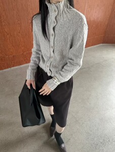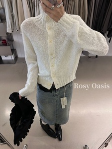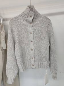 高端设计感时尚排扣高领两穿法羊毛针织开衫女秋冬叠穿打底毛衣