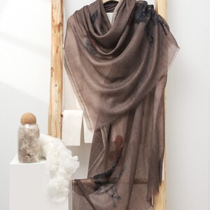 她信服饰柿柿如意手绘60g山羊绒围巾戒指绒薄款高版本简约披肩