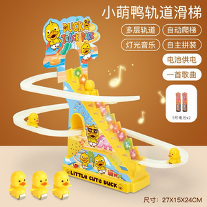抖音同款小鸭子爬楼梯益智儿童玩具网红轨道滑滑梯代发批发电动