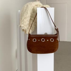 2025秋冬复古豹纹包铆钉小众腋下包高级感跨境麂皮绒单肩小方包女