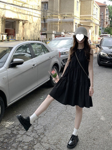 媌老板『松露小黑裙』MIAOLAB夏季新款无袖拼接A摆宽松娃娃连衣裙