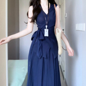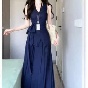 法式气质无袖系带上衣半身长裙两件套女夏季新款独特小众洋气套装