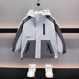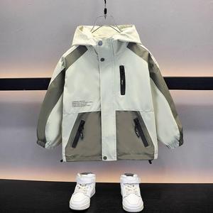 男童冲锋衣外套春秋款2025新款中大儿童秋装洋气男孩休闲连帽上衣