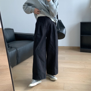 棉立体双褶宽边九分宽松直筒休闲裤高腰百搭阔腿裤女