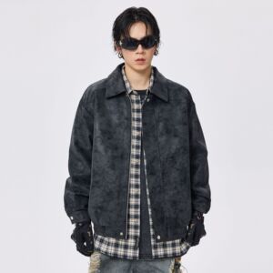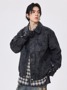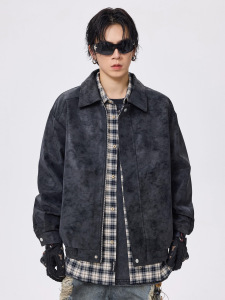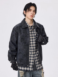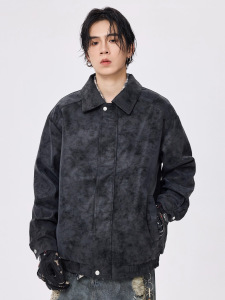 工厂日系复古星空图案设计感百搭款休闲外套做旧翻口捏褶宽松夹克
