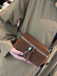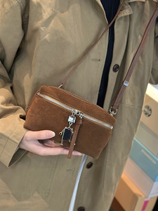 麂皮绒包包女款斜挎小方包2025新款时尚百搭高级感单肩包复古通勤