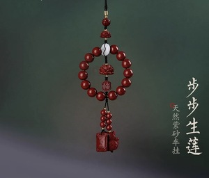 新款朱砂菩提莲花多宝汽车挂件车内吊坠本命年车挂饰平安礼物