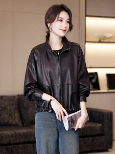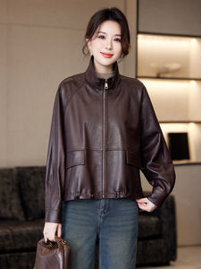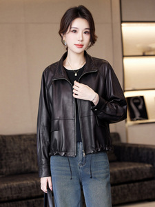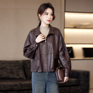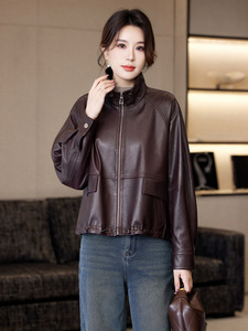 春秋季小众短款真皮衣时髦休闲减龄翻领机车绵羊皮法式经典皮夹克
