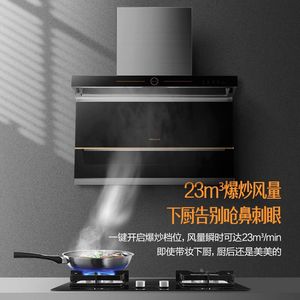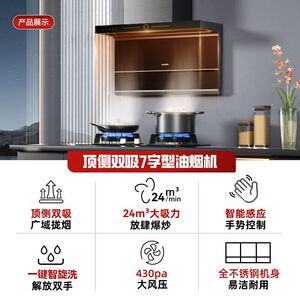 万和顶侧双吸抽油烟机厨房家用大吸力7字型自动清洗双进风24M³