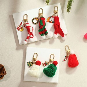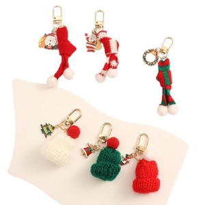 新款跨境钥匙扣手工挂件配件针织帽钥匙扣圣诞树雪人圣诞节小礼物