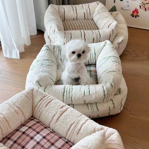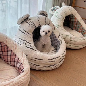 提花格子胖熊耳朵窝摇篮窝房子窝可拆洗三件套宠物棉窝猫狗狗窝