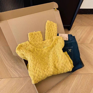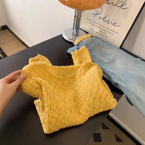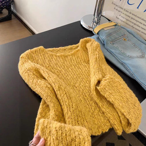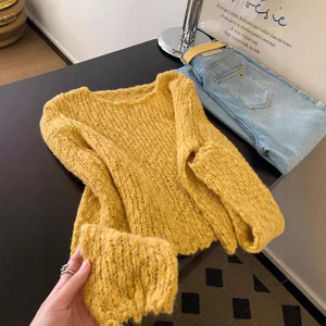 黄色复古长袖外穿套头毛衣女宽松慵懒风高级感针织衫上衣2025新款