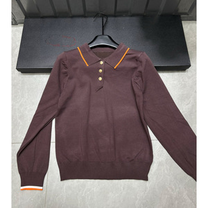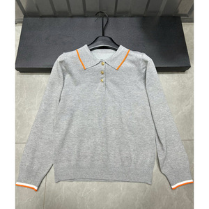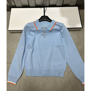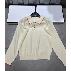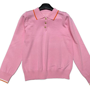 2025年秋季新款爱马家纽扣多色针织翻领长袖套头宽松百搭女毛衣