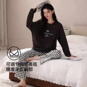 【带胸垫】抗菌棉睡衣女士纯棉长袖春秋季韩版时尚家居服套装新款