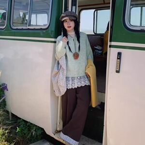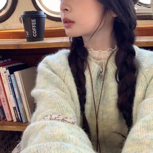 绿色毛衣外套2025新款秋冬韩系独特超好看慵懒风宽松针织开衫上衣