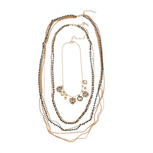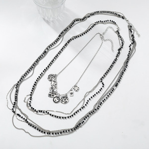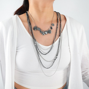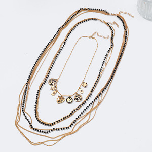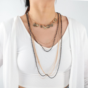 ZA跨境货源多层爱心串珠秋款项链链条合金锁骨链欧美夸张大牌女士