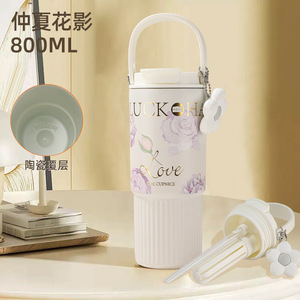 莫奈花园保温杯高颜值大容量车载便携茶水分离吸管双饮杯节日送礼